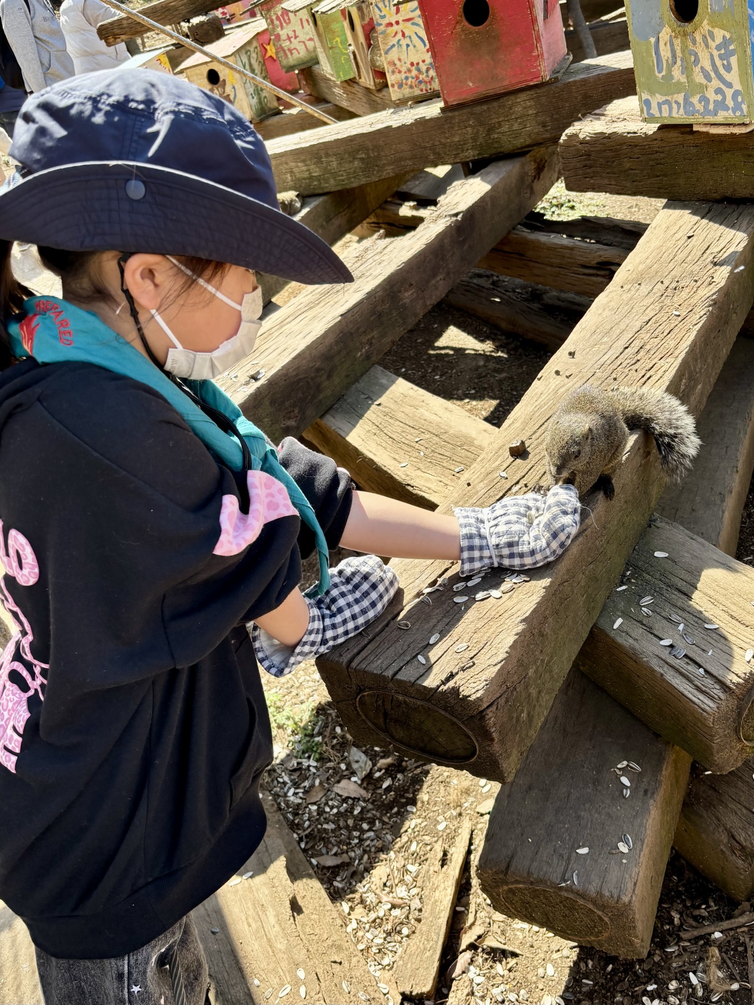 ひまわりの種をリスさんにあげます🌻